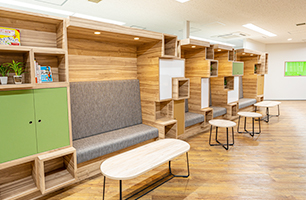学生同士での交流や複数人での撮影に適した開放的なスペースを設置しています。