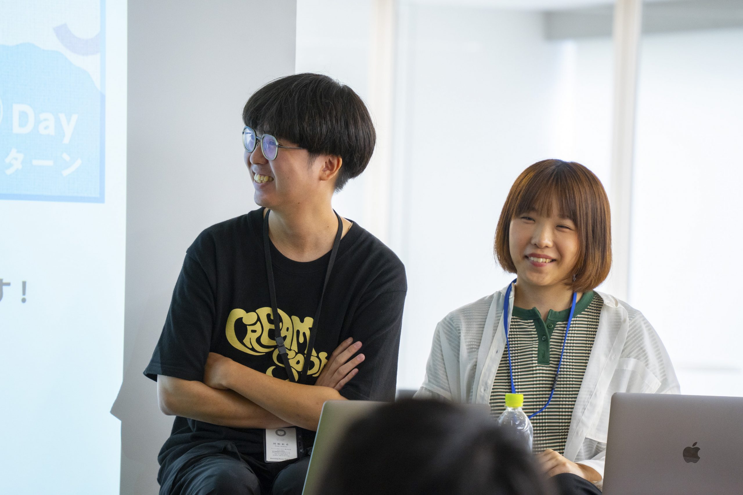 バンタンクリエイターアカデミー 2年制 映像制作専攻2年次 後藤さん(写真左)「『快』抽出ワークを通して、新しい経験をすること、褒められること、特に作品を見せて人に肯定してもらえると嬉しいということが分かりました!」