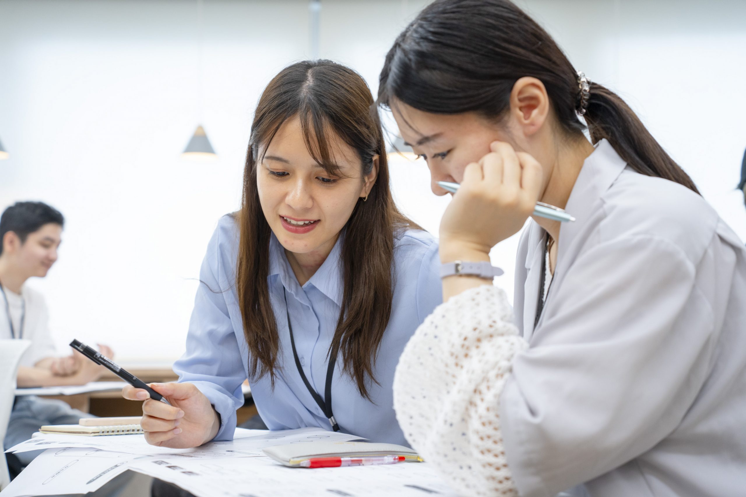 岡嶋さん(写真左)「美大を卒業し、広告制作会社でコピーライターとしてキャリアを積みました。あまり職種にはこだわらず、さまざまな業務に携わっています」