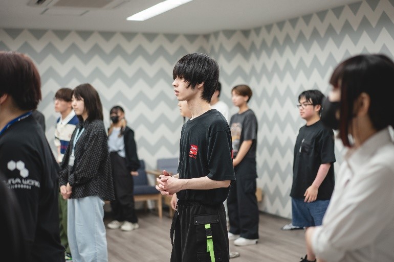 坂本講師「今日は3時間、本当によく動きました!ストレッチで普段使わない筋肉をほぐし、ボイストレーニングから歌へとつなげていく流れは、マイク前での声の出し方にもつながります。体を動かしたので、最後の発表では、最初よりもずっと声が出ていました!各チームに与えられた練習時間は15分だけでしたが、短時間でもしっかり仕上げていたのは見事でした。間違えても次の動きをちゃんとやろうとする姿勢が伝わってきて、本当に素晴らしかったです。これは“ファン心理”ですが、ステージで自信なさげに小さく動いていると、応援しにくいもの。でも、今日の皆さんのように、間違えても一生懸命にやっている姿は、自然と声援を送りたくなります!もがきながらも全力でパフォーマンスする人は美しいです!今日はかなり体を使ったと思うので、必ずマッサージしてください。明日は筋肉痛かもしれませんが、体調管理もしっかりとしてください。ありがとうございました!」と締めくくりました。