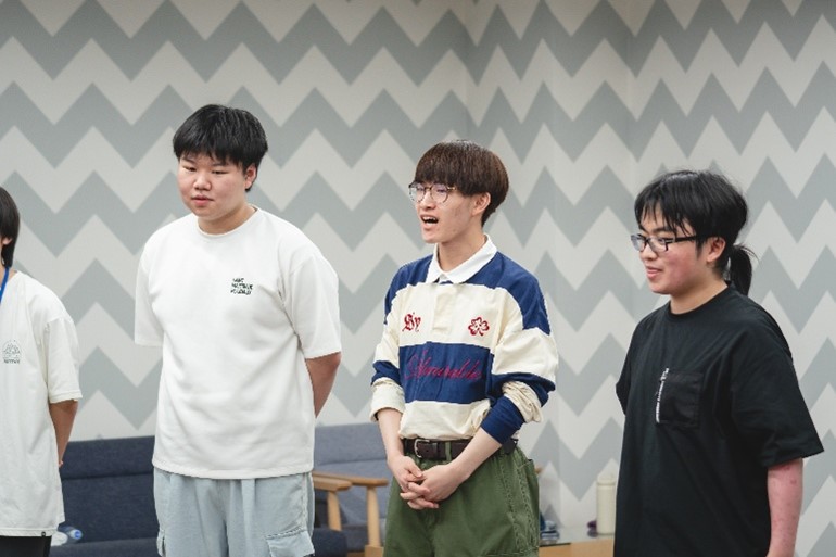 「原曲キー」のグループも同様に練習し、メンバーからは「ムズッ!」「速い」との声があがりました。最後に「原曲キー」「+3キー」のグループに分かれて、歌とダンスを披露!