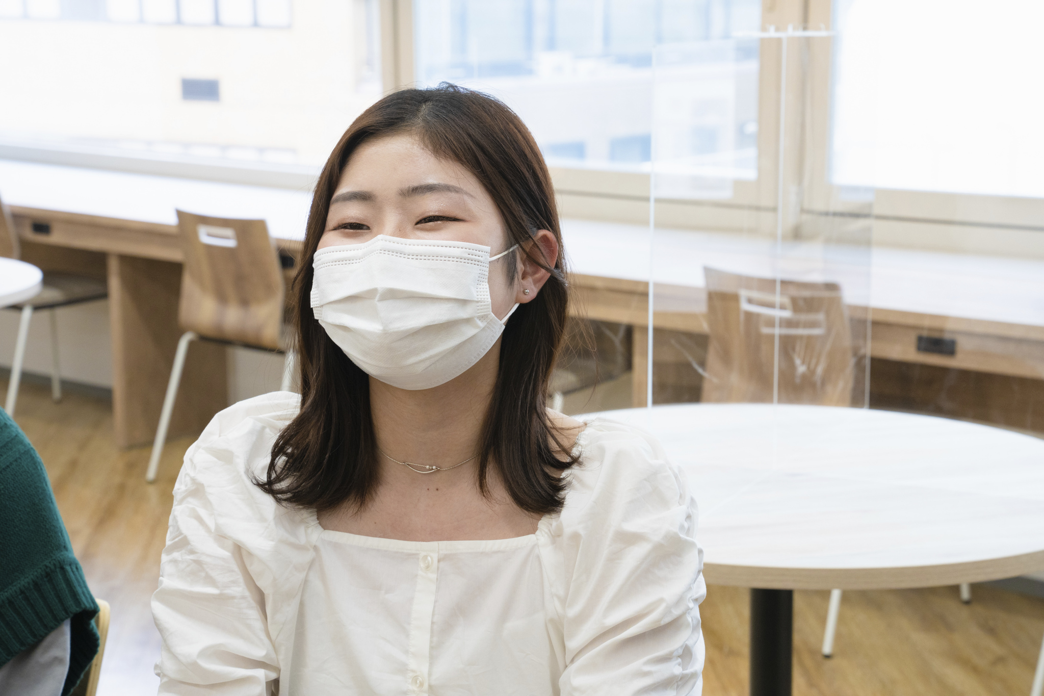 「オフィスみたいな校舎で嬉しいです。初回授業から、動画制作の仕事の裏側を知れた感じがしました。企業タイアップ案件では原稿がある、というのも知らなかったです。これからは、自分もコンテンツを生み出す側になっていくんだなという気持ちが芽生えました」と、話します。