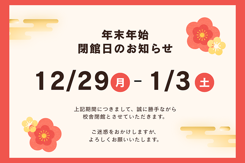 【年末年始閉館のご案内】